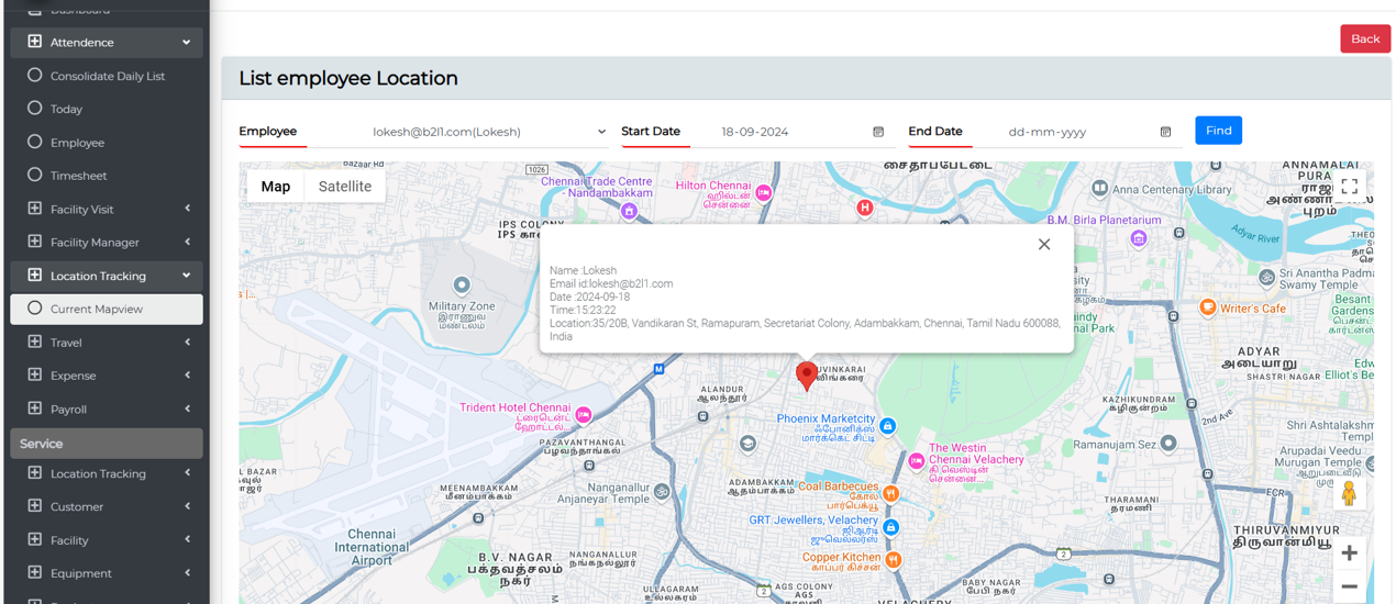 View employee locations in real time on an interactive map, helping managers monitor field teams and improve task allocation.