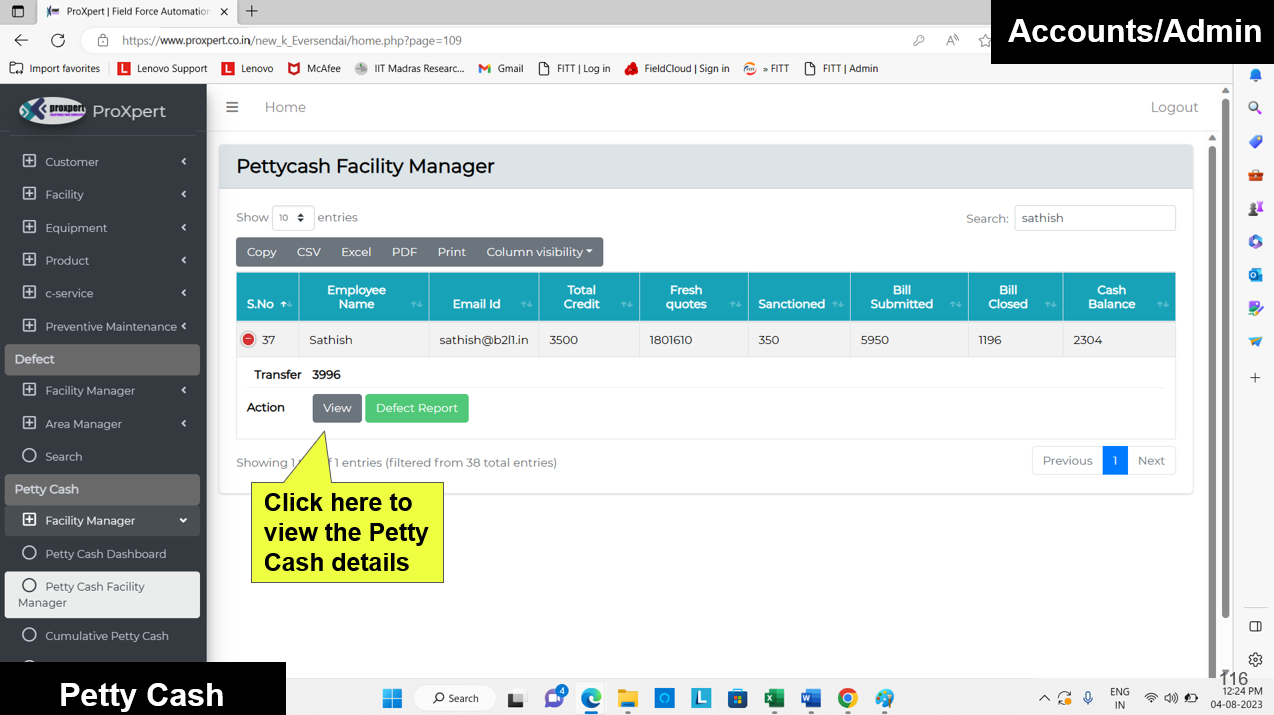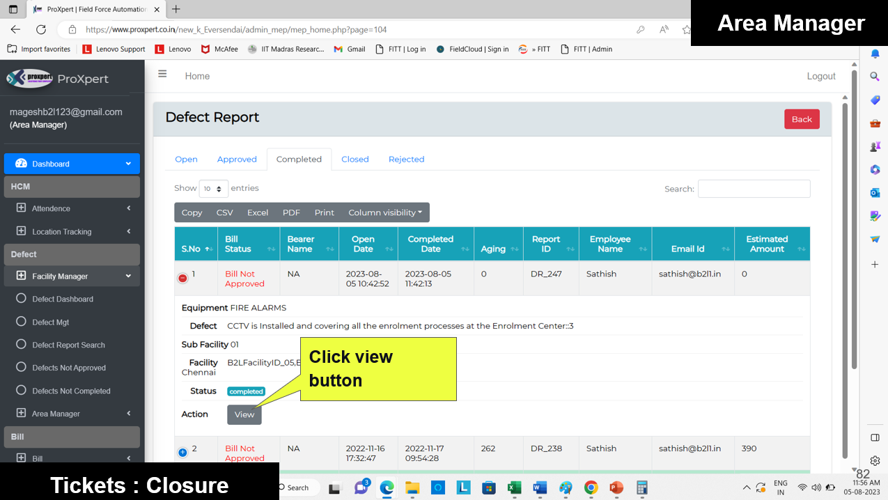 Once the Defect Report is completed by the Facility Manager, the Account department can verify the bill and then close the defect.
