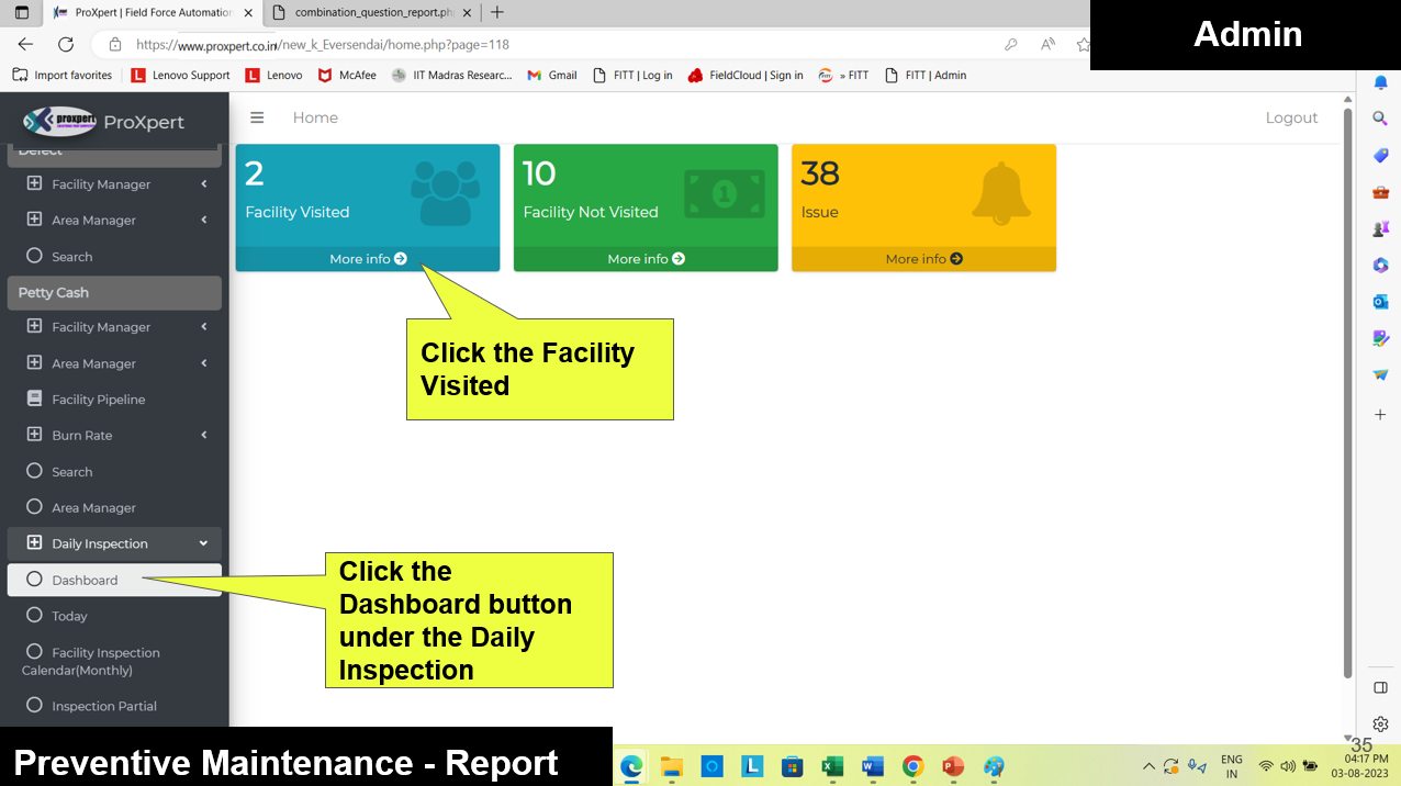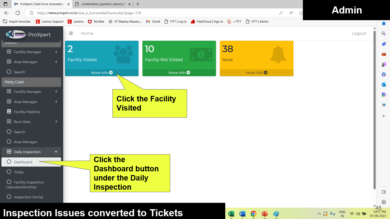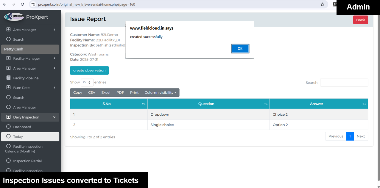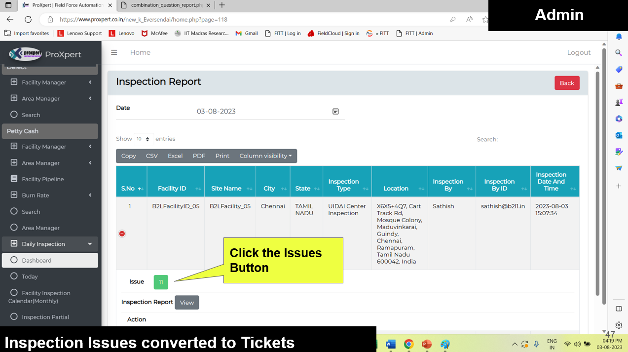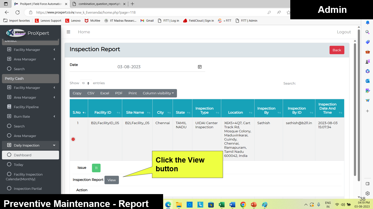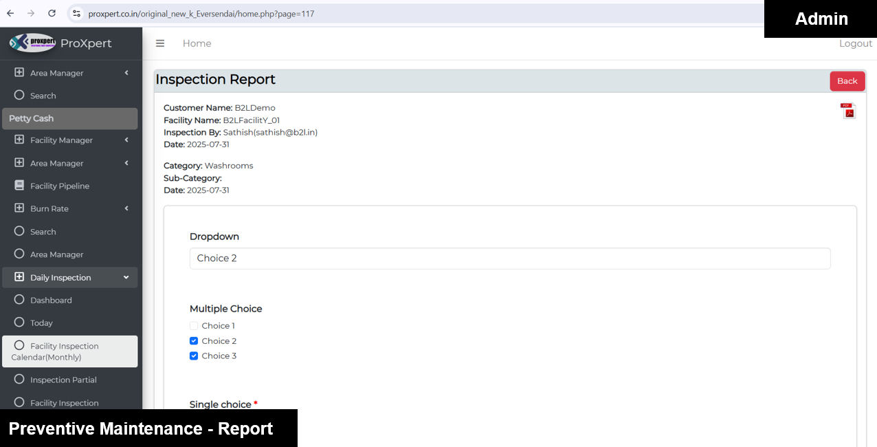 Once Inspection form is Submitted by Field manager, the admin can view the Inspection Reports at backend console.
