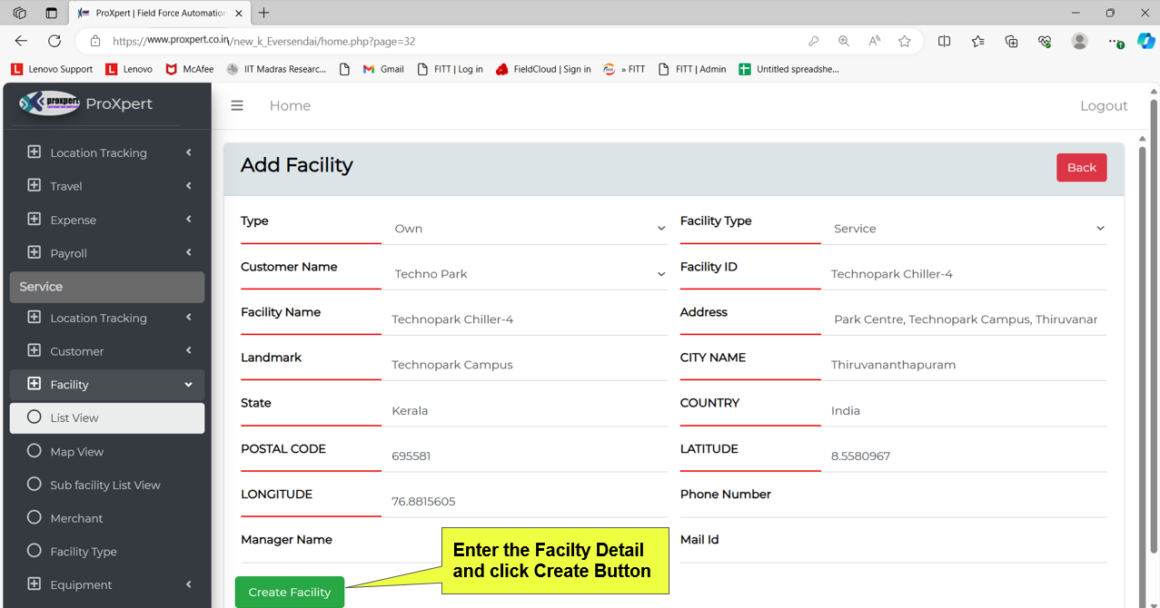 - Facility Manager Registration